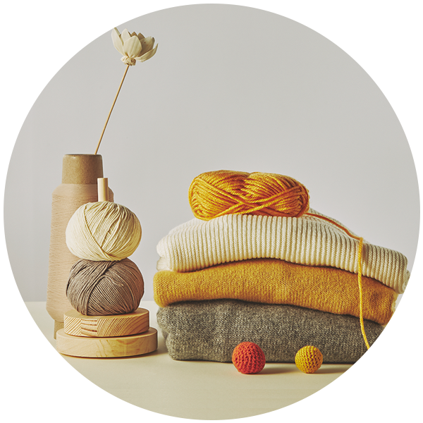 We research materials and processing methods that are easy to use for beginners, practical for finished products, and create new textures when knitted.